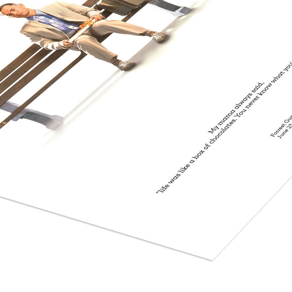 The design is a masterpiece of minimalist elegance. By placing the solitary figure of Forrest against a stark white background, the image highlights his humility and the simple, unshakeable goodness of his character. The clean composition and classic typography make it a sophisticated tribute to a film that taught us about love, destiny, and the importance of just keeping on running.