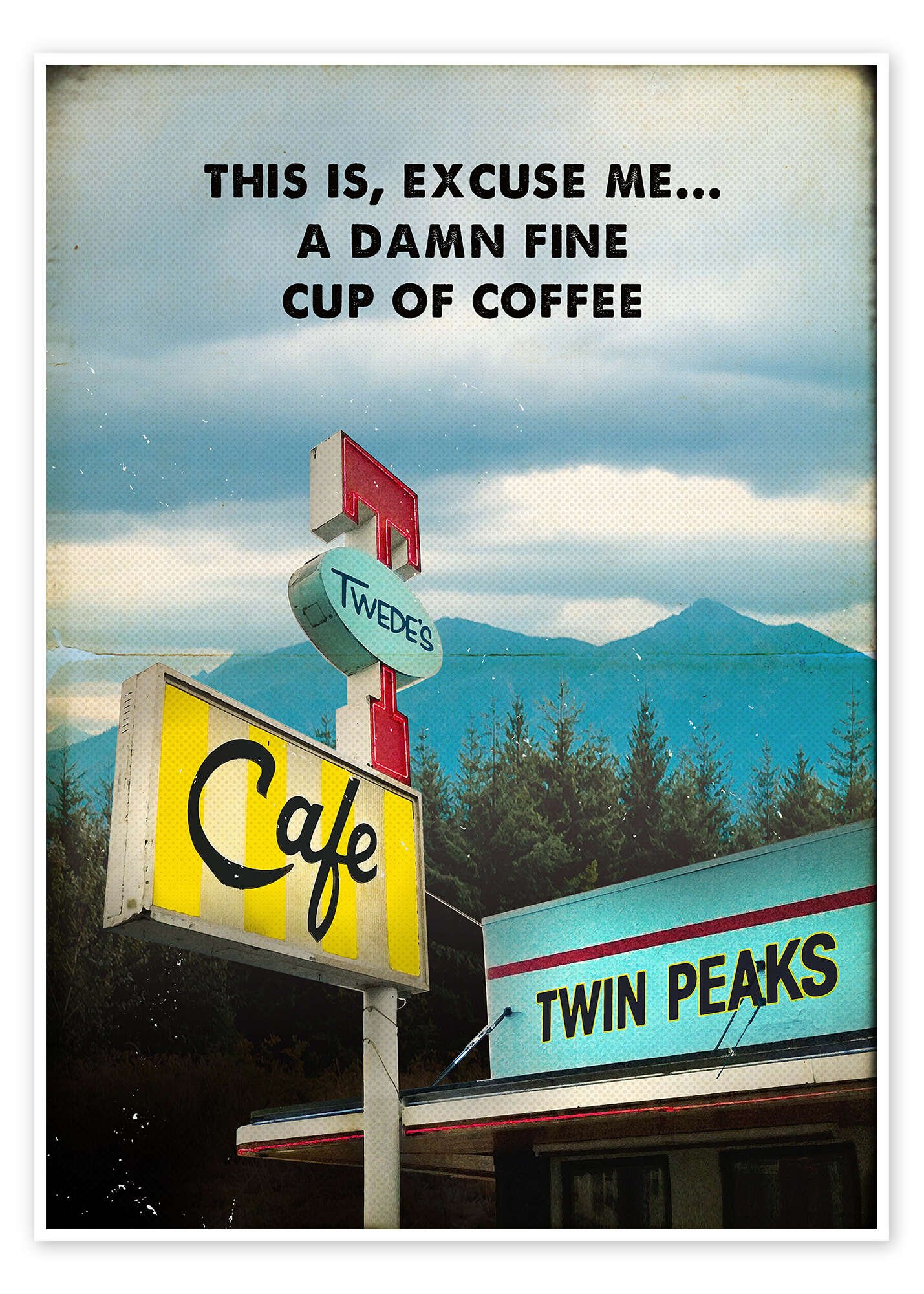 This is where it all happens. This charming, retro-inspired poster is a loving tribute to the heart of a town both wonderful and strange: the Double R Diner from Twin Peaks. Featuring the iconic sign of the real-life Twede’s Cafe, the misty mountain backdrop, and Agent Dale Cooper’s most enthusiastic endorsement, this artwork is a perfect slice of cherry pie for your wall.