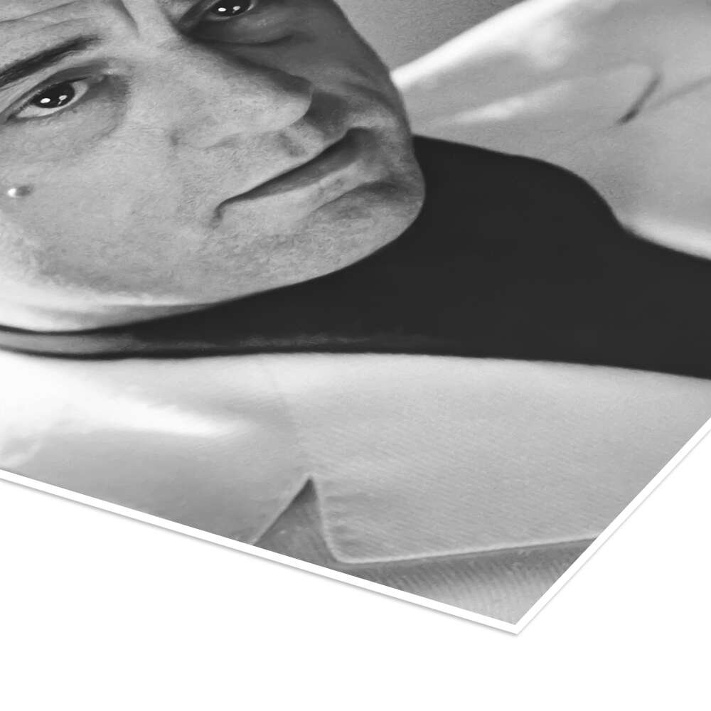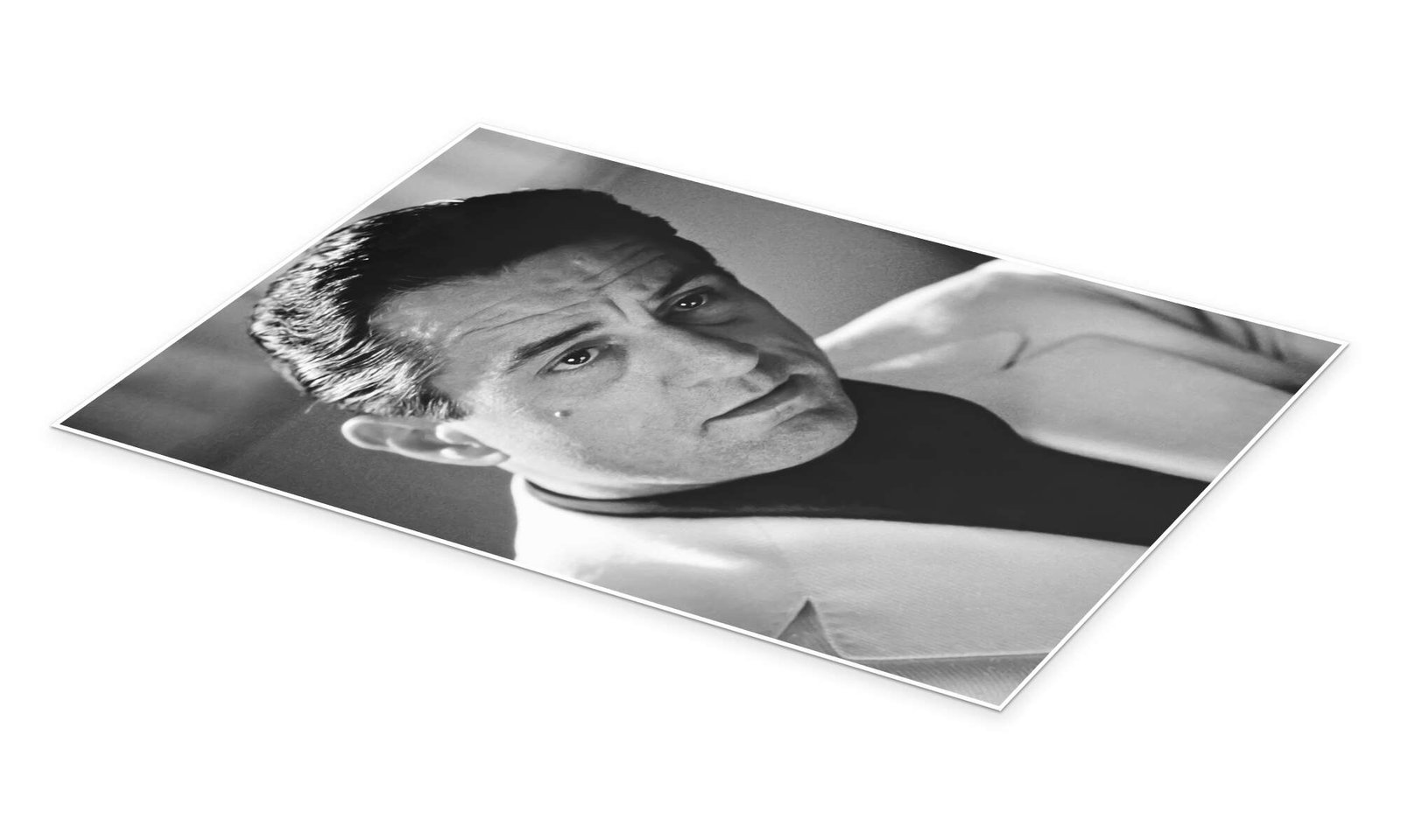 A masterclass in cinematic portraiture, this piece uses the power of black and white to focus on pure performance. The high-contrast lighting carves out the complex emotions on De Niro’s face, while the soft focus of the background isolates him in his own world. Every line and shadow tells a story of power, obsession, and the price of perfection.