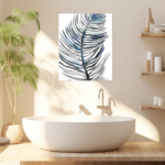 This print is the definitive choice for zen bathroom wall art. Its cooling tones complement white porcelain, marble, and chrome fixtures beautifully. Whether hung as a serene focal point above the tub or as a subtle accent in a guest powder room, “Azure Plume” infuses your home with a modern, spa-inspired vibe.