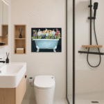 Perfectly suited for adding personality to your bathroom, powder room, or even a laundry room, this canvas print is a conversation starter. Its unique subject matter and rich colors make it an ideal focal point in farmhouse, cottage-core, or eclectic decor schemes. Let “Bathtub Bouquet” infuse your space with a daily dose of cheer and imaginative flair.