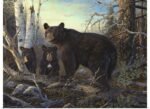In the quiet hush of the deep woods, a family moment unfolds. “Birchwood Watch” is a breathtakingly intimate portrait of maternal love in the wild, capturing a watchful mother bear as she stands guard over her curious young cubs. This artwork is a window into a secret world, a tribute to the powerful bonds of family and the serene, untamed beauty of the forest.
