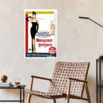 The poster is a masterpiece of 1960s illustration and design. The elegant, full-length portrait of Holly Golightly—complete with her signature black dress, cigarette holder, and nameless “cat”—is one of the most recognizable images in pop culture. The clean, sophisticated layout and the bold, stylish typography come together to create a piece of art that is as timeless and beloved as the film itself.