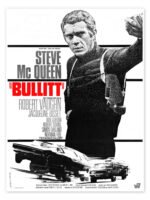 The poster is a masterclass in high-impact minimalism. The artist uses a stark, high-contrast black and white aesthetic to create a raw, grainy texture that feels authentic and powerful. The image is brilliantly divided between a commanding portrait of McQueen as the unflappable detective and a dynamic, almost abstract depiction of the most famous car chase in cinema history. The bold typography, with its single slash of red, is the perfect finishing touch.