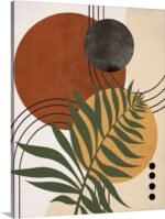Bring a sense of balanced warmth and artistic structure to your home with this captivating design. “Earthen Geometry” creates a beautiful dialogue between the natural world and modern design, merging the organic curves of a fern frond with the clean precision of mid-century geometry. It is an artwork that feels grounded, stylish, and full of character.