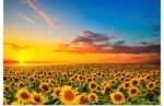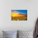 Gaze out upon a sea of gold that stretches as far as the eye can see. “Eternal Summer” is a captivating landscape that freezes a perfect moment in time—the sun dipping towards the horizon, casting a warm, amber glow over a seemingly infinite field of sunflowers. This artwork is a window to the outdoors, inviting the vastness, warmth, and vibrant energy of nature right into your living space.