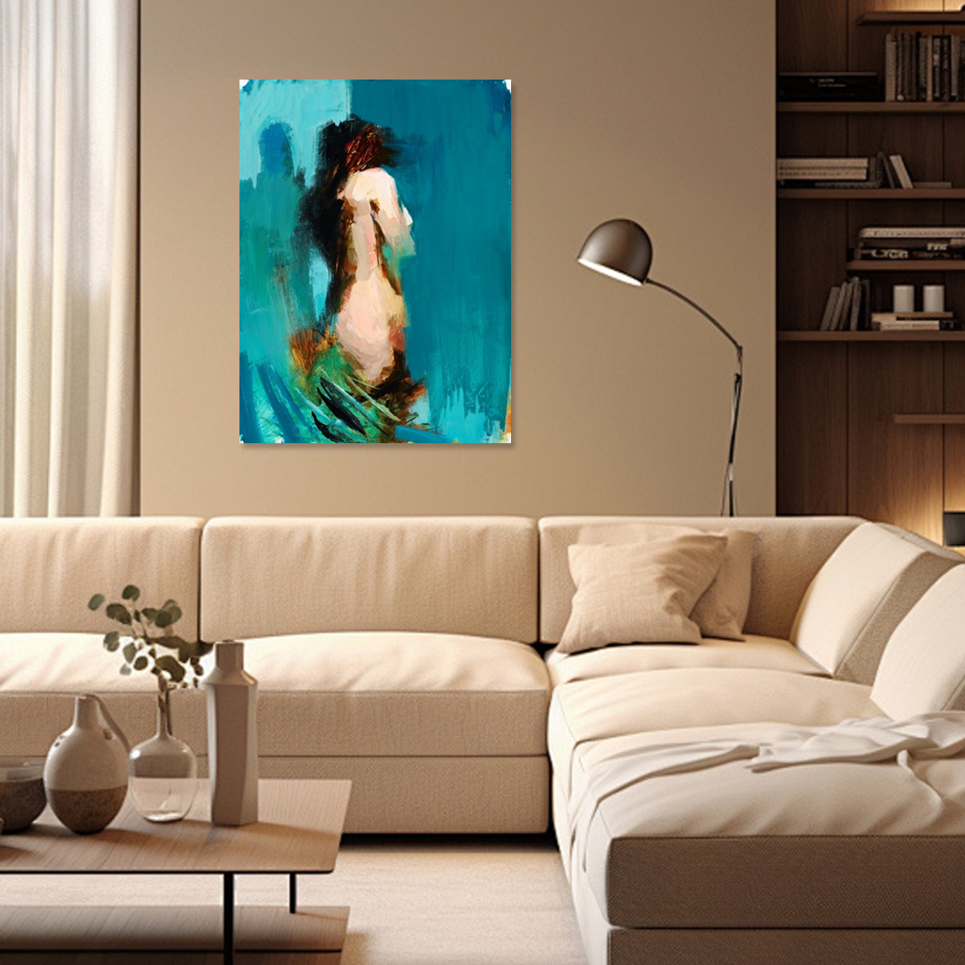 This print is an exceptional choice for abstract wall art for the living room. Its vibrant blue hues bring a splash of energy to the space, while the sophisticated subject matter adds an air of high-end gallery style. Whether placed above a sofa or on a feature wall, “Figure in Teal” elevates the room with its artistic depth and modern elegance.