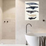 A perfect addition to a child’s bathroom or playroom, this wall art is a fun and stylish way to inspire a love for marine life. It is equally at home in a family bathroom with a coastal or nautical theme, or even a home office for the ocean lover. Its timeless charm and educational nature make it a truly unique and engaging piece for any space.