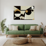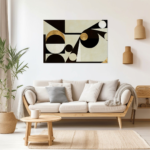 This print is the definitive choice for modern wall art for the living room. Its neutral yet dramatic palette makes it incredibly versatile, pairing perfectly with velvet sofas, brass fixtures, and modern furniture. Whether hung as a large statement piece above a sofa or as the center of a contemporary gallery wall, “Golden Intersection” infuses your gathering space with timeless elegance.