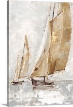 Capture the quiet grace and timeless allure of a day on the water. “Golden Sails” is a sophisticated, abstract interpretation of a tranquil regatta, focusing on the beautiful interplay of light, texture, and form. This artwork evokes the feeling of a gentle breeze and the calm glide of sailboats, rendered in a style that is both modern and elegantly rustic.