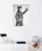 This is a classic piece of pop culture history. Stripped of the TV show’s bright colors, this stunning black and white portrait gives ALF a surprisingly timeless and artistic quality. The simple composition and friendly, waving pose perfectly highlight the brilliant character design and puppetry that made him an unforgettable icon of a generation.