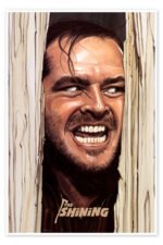This is not just a scene; it’s a cinematic nervous breakdown captured on canvas. This is a breathtaking artistic recreation of the single most iconic and terrifying moment from Stanley Kubrick’s horror masterpiece, The Shining. The image of Jack Torrance’s maniacal, leering face breaking through the shattered bathroom door is forever burned into the collective consciousness of film lovers.