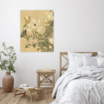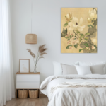 This print is an exceptional choice for floral wall art for the bedroom. Its neutral palette and romantic subject matter make it a versatile addition to a master suite, complementing everything from traditional wood furniture to soft, modern linens. Whether hung above the bed or in a reading nook, “Imperial Magnolias” brings a sense of history, peace, and natural beauty to your home.