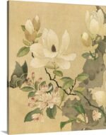 Infuse your personal retreat with the timeless grace and quiet nobility of classical art. “Imperial Magnolias” captures the ethereal beauty of white blossoms unfurling against an antique parchment background. This artwork is a visual poem, celebrating the delicate balance of nature and the enduring elegance of vintage design.