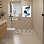 This abstract wall art is a sophisticated choice for any modern bathroom or powder room. Its serene, aquatic feel and deep blue palette evoke a sense of calm, making it ideal for creating a spa-like atmosphere. The minimalist design ensures it enhances your space with contemporary elegance without overwhelming it.