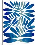 Immerse yourself in the cooling, restorative power of blue with this striking botanical artwork. “Indigo Vine” reimagines the natural world through a modern, abstract lens, featuring a rhythmic, climbing plant form rendered in beautiful watercolor textures. It is a piece that feels both structured and fluid, bringing a sense of order and organic beauty to your home.