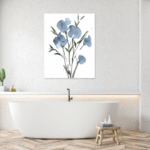 This print is the perfect choice for zen bathroom wall art. Its cooling blue tones and uncomplicated design naturally promote a spa-like vibe, perfect for unwinding in a soaking tub. Whether your bathroom is modern, coastal, or simply clean and white, this elegant floral piece adds a touch of sophisticated tranquility.