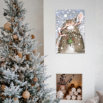 This Christmas wall art is a perfect way to add a touch of whimsical, rustic charm to your home. It’s an ideal choice for a child’s bedroom, a cozy family room, or a kitchen in need of some holiday cheer. A wonderful gift for any animal lover, this piece is a joyful celebration of nature and the festive spirit.