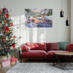 This Christmas wall art is a fantastic choice for bringing the outdoors in during the holiday season. It fits perfectly in a family room, a lakeside cabin, or any space where you want to create a relaxed and festive mood. With its blend of playful character and scenic grandeur, this canvas print captures the full, wonderful spectrum of a country Christmas.