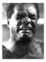 The dramatic black and white treatment strips the scene down to its raw emotional core. Every strained muscle and wrinkle is rendered with intense, painterly detail, creating a portrait that feels both monumental and comically familiar. The high-contrast lighting gives the piece a surprisingly artistic depth, transforming a fleeting moment of exertion into a timeless work of art.