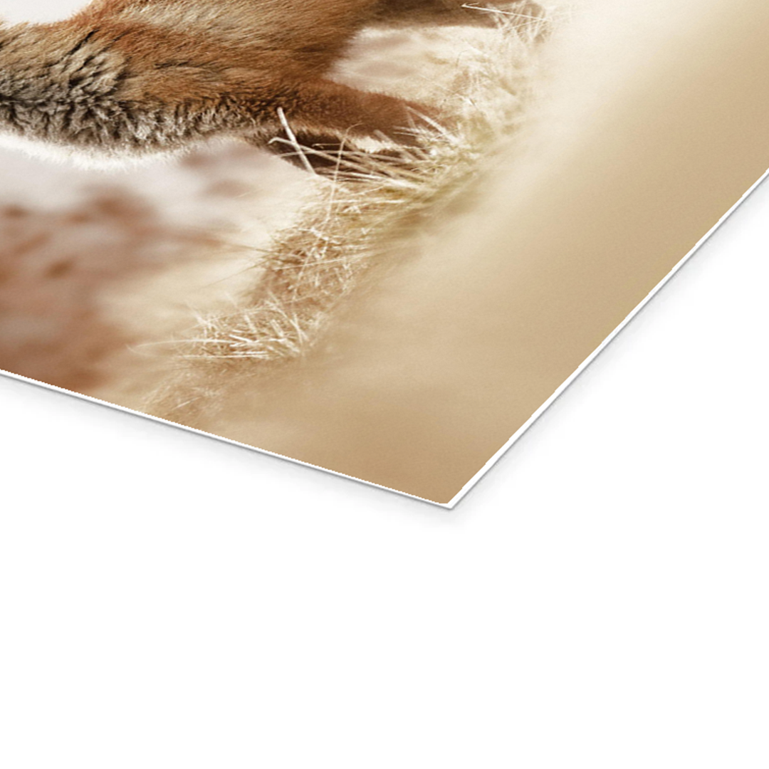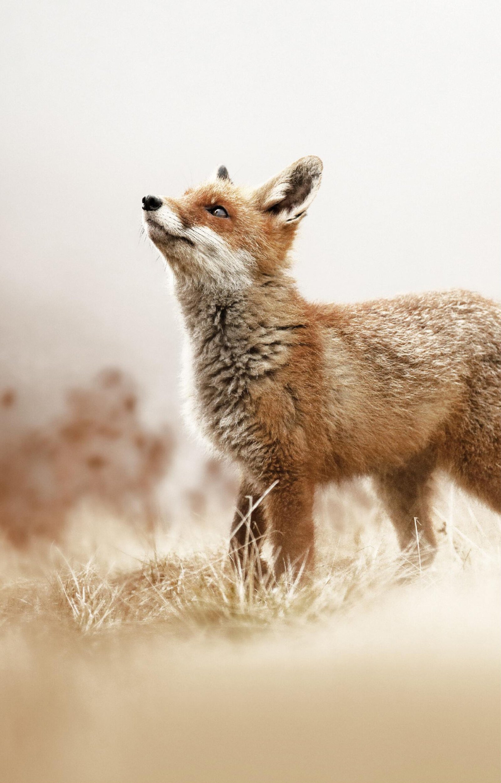 The photographer has masterfully used a soft focus technique to isolate the subject, turning the background into a painterly wash of cream and beige. This artistic choice emphasizes the fox’s connection to the earth while giving the image a serene, ethereal quality. It is a moment of pure natural beauty, frozen in time.
