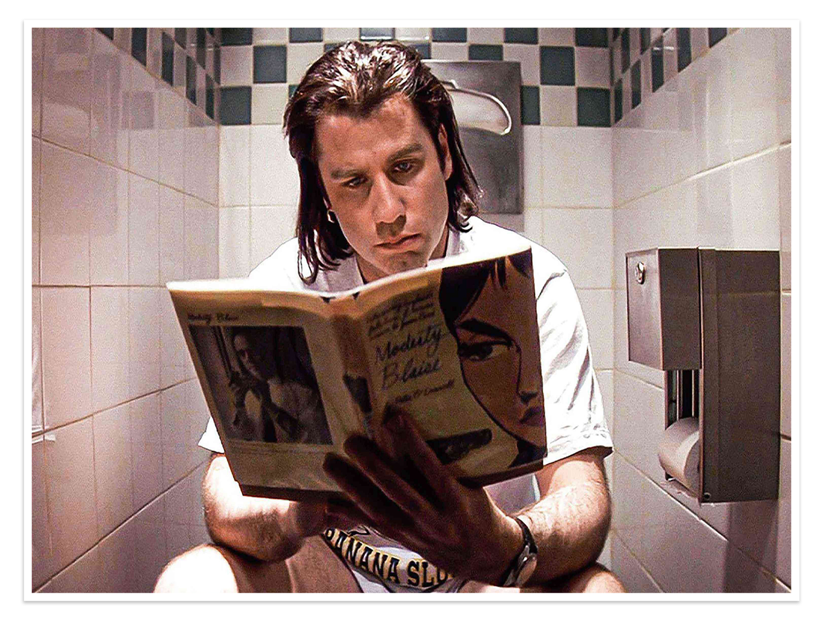 This is, without a doubt, the ultimate piece of “inside joke” funny bathroom art. It is guaranteed to be a conversation starter and a source of knowing chuckles from any true cinephile who visits your home. A must-have for any fan of Pulp Fiction, it’s the perfect, clever centerpiece for a guest bathroom, man cave, or home theater.