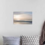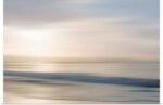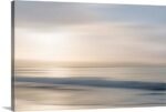 The artist uses the technique of intentional camera movement to transform a landscape into a painting of light. Horizontal bands of creamy beige, soft peach, and muted slate blue bleed gently into one another, mimicking the rhythmic motion of the tides and the soft glow of the rising sun. It is a piece that feels both modern and timelessly romantic.
