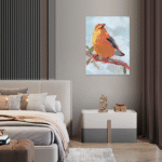 Wake up to a cheerful greeting from nature every day with this delightful avian portrait. “Morning Melody” captures the spirited essence of a small songbird, its feathers ablaze with the colors of the rising sun. This artwork is a celebration of the simple, quiet beauty found in the natural world, designed to start your day with a smile.