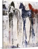 Unleash a wave of raw, untamed energy onto your walls. “Phantom Herd” is not a placid portrait but a primal expression of movement and spirit. This artwork captures the ghost-like essence of three horses, their forms deconstructed into a beautiful chaos of lines, drips, and color. It’s a piece that speaks to the wild, untethered soul within the noble equine form.