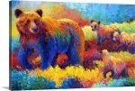 Embark on a journey through a world saturated with color and love. “Prismatic Journey” is a touching portrayal of maternal protection and family bonds, depicting a mother bear confidently guiding her three curious cubs. The scene is alive with warmth and affection, celebrating the strength and tenderness of family in a landscape that feels both wild and wonderfully dreamlike.