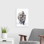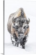 Immerse yourself in the silent majesty of the winter wilderness. “Solitary Trek” is a striking study in contrast and resilience, capturing a lone American bison as it carves a path through the deep, pristine snow. The image strips away the noise of the world, leaving only the stoic determination of the animal against the blinding white of the elements.