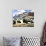 Step back in time to an era of wide-open spaces and untamed wilderness. “Spirit of the Canyon” is a powerful tribute to the American bison, an enduring symbol of strength and resilience. This painting captures a breathtaking moment as a massive herd grazes peacefully under the watchful eye of the mesas, evoking a profound sense of history and the raw, untouched beauty of the plains.