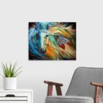 The artist’s style is a masterful explosion of color and movement. Using a bold, expressionistic technique, the entire painting becomes a flowing river of brilliant hues. The horse’s form is sculpted from a storm of cool blues and fiery oranges, its mane a cascade of every color of the sunset. Every brushstroke is alive with energy, creating a piece that is dynamic, emotional, and deeply spiritual.