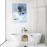 This abstract wall art is a stunning choice for a contemporary bathroom, instantly creating a sophisticated and dramatic focal point. The cool, aquatic palette is a natural fit for a spa-like environment, yet its powerful energy also makes it an incredible statement piece for an office, hallway, or living room.