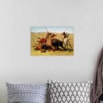 Step back into a time of raw courage and untamed wilderness. “The Buffalo Hunt” is a powerful piece of historical storytelling, capturing the adrenaline and danger of life on the American plains. This vintage-inspired artwork depicts the visceral intensity of a traditional bison hunt, a moment where skill, bravery, and the sheer force of nature collide in a cloud of dust and thunder.