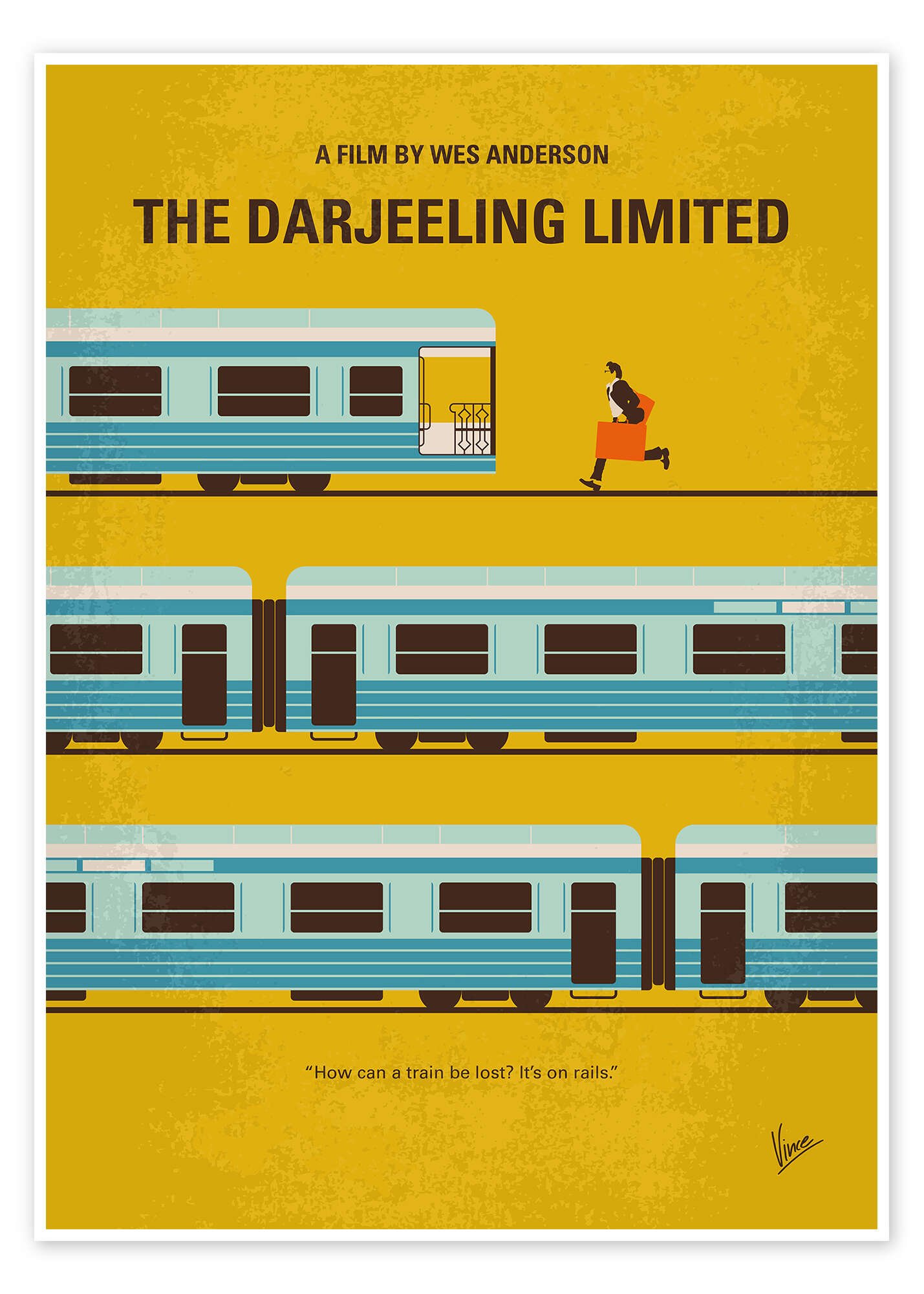The design is a stunning example of the clean, symmetrical, and storybook style that has made Wes Anderson a celebrated auteur. The artist uses a warm, vintage color palette and flat, graphic shapes to recreate the iconic image of the brothers’ chaotic race to catch their train. The poster brilliantly conveys a sense of movement, adventure, and the idea of being just a step behind schedule, which perfectly sums up the characters’ journey.