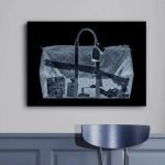 What lies beneath the surface of luxury? “The Getaway Bag” is a bold and thought-provoking piece that peels back the layers of high fashion to reveal a darker, more dangerous reality. Presented as a stark, clinical x-ray, this artwork transforms a symbol of status and wealth into a container for the tools of a high-stakes, illicit lifestyle. It’s a powerful statement on the nature of power, ambition, and what it truly takes to “make it.”