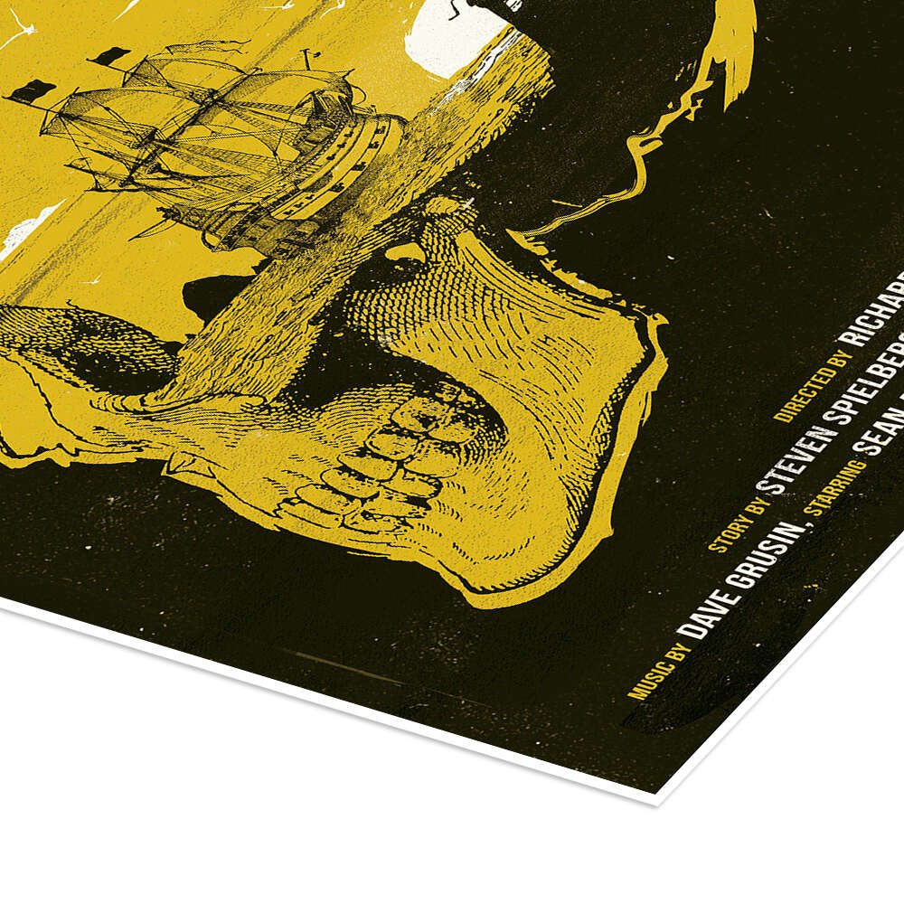 The design is a masterwork of visual storytelling. At first glance, you see a pirate skull, a symbol of One-Eyed Willy’s treasure. But look closer: the side of the skull is the silhouette of the Goonies themselves, discovering the Inferno pirate ship, which is revealed through the skull’s eye socket. It’s a perfect, symbolic encapsulation of the entire film in one unforgettable image.