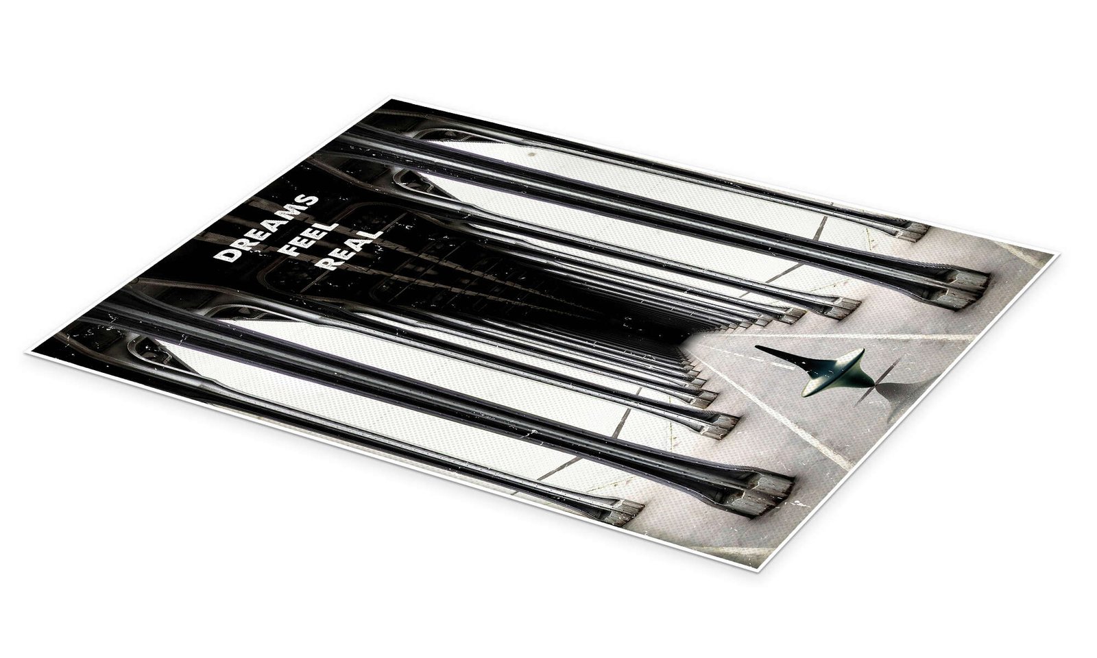 The design is a masterclass in modern surrealism. The stark, industrial beauty of the steel bridge creates a sense of infinite depth, pulling the viewer into the frame. The monochromatic palette adds a sleek, intellectual edge, while the text “DREAMS FEEL REAL” serves as a haunting reminder of the film’s central philosophy. It is a visual puzzle that is as elegant as it is mind-bending.