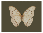 The power of this piece lies in its stark, minimalist elegance. The creamy white butterfly, with its incredibly fine veins and subtle, symmetrical eye-spot patterns, is isolated against a deep, muted background. This high-contrast composition strips away all distraction, focusing the viewer’s entire attention on the subject’s fragile and complex beauty, transforming a natural wonder into a work of sophisticated graphic art.