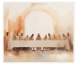 Invite a spirit of grace and tranquility into your most personal space with this exquisite watercolor artwork. “The Sacred Table” reimagines a momentous historical scene through a lens of softness and warmth. It moves away from heavy drama to focus on the intimacy and fellowship of the moment, creating a visual atmosphere that is as calming as it is inspiring.