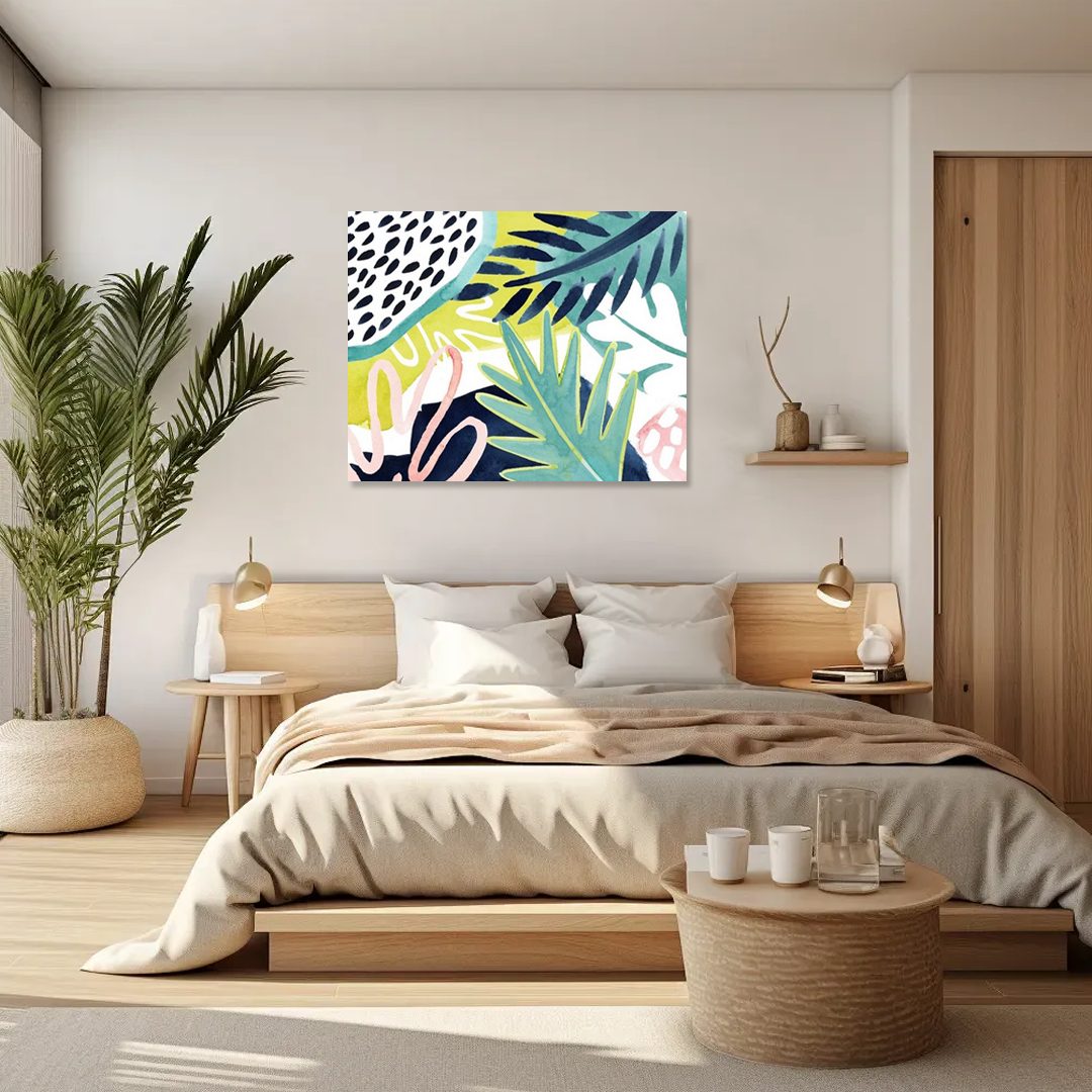 Tropic Collage: A Modern Abstract Bedroom Wall Art Print
