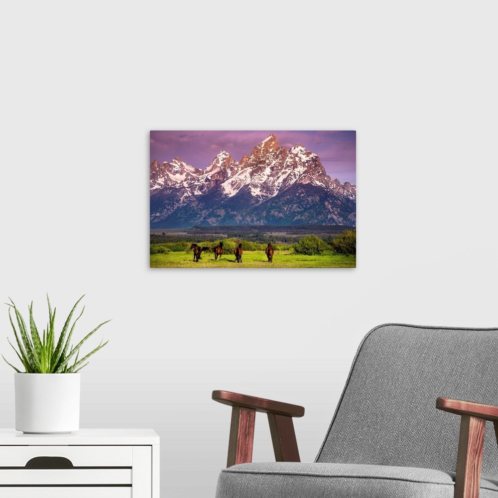 Valley of Giants: A Majestic Landscape Horse Wall Art of the Tetons