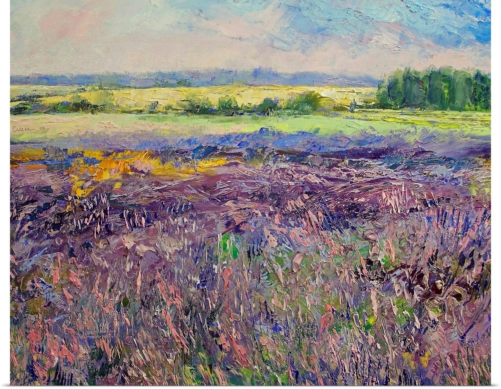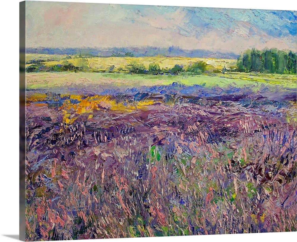 Wander through a landscape where color and texture come alive. “Violet Horizons” is a masterful impressionist interpretation of the countryside, capturing the wild, untamed beauty of a lavender field in full bloom. This artwork invites you to get lost in the layers of paint, feeling the breeze ripple through the purple flowers and seeing the sun light up the golden meadows in the distance.