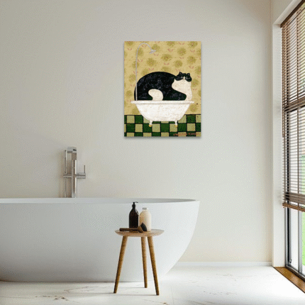 Tubby Cat Blues: A Vintage Folk Art Funny Bathroom Wall Art Print