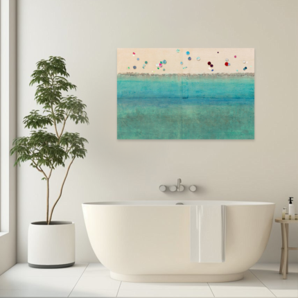 Turquoise Shoreline: A Coastal Beach Bathroom Wall Art Print